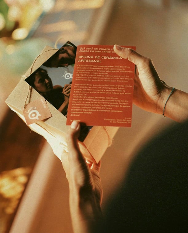 • um pedaço de barro pra que a pessoa possa ir literalmente sentindo como é a experiência;